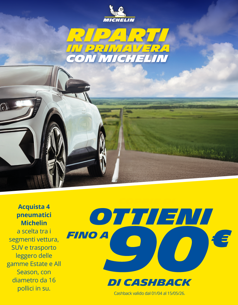 Dal 01 Aprile 2026 al 15 Maggio 2026, recati in un rivenditore aderente ed acquista almeno un set di 4 pneumatici dei segmenti vettura,