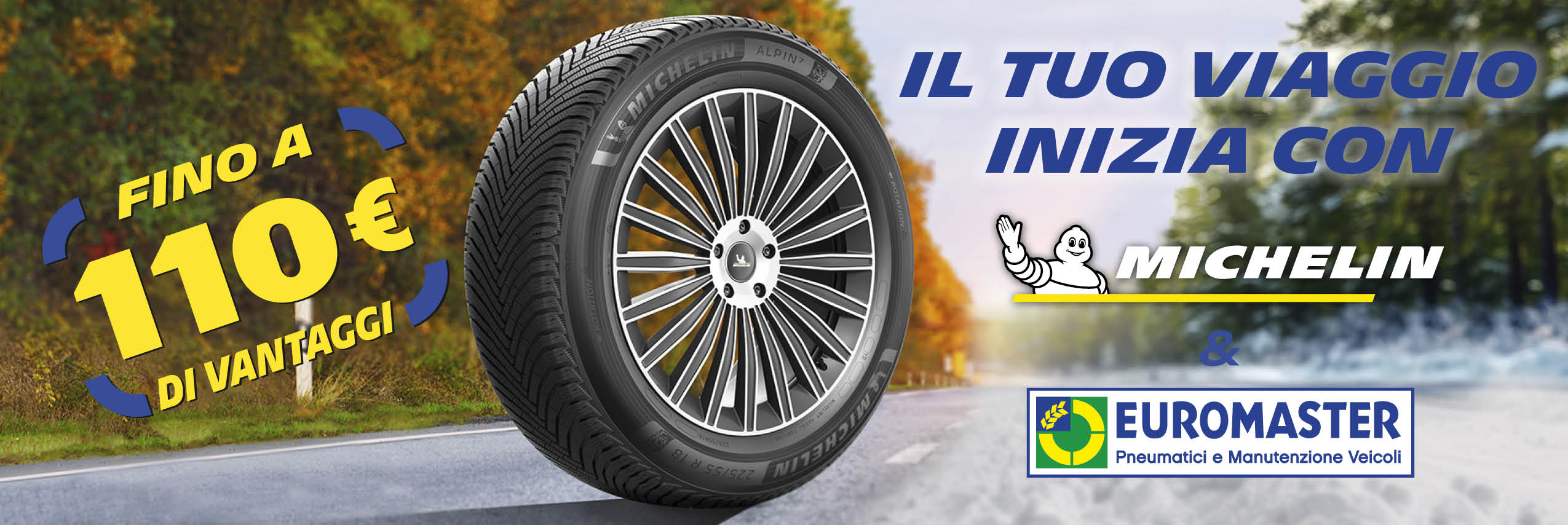 Dal 13 Ottobre al 30 Novembre 2025 recati in un rivenditore EUROMASTER aderente ed acquista almeno 4 pneumatici vettura,