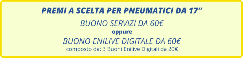 N. 1 PREMIO DA 60€, a fronte dell’acquisto di n. 4 pneumatici MICHELIN con diametro da 17 pollici