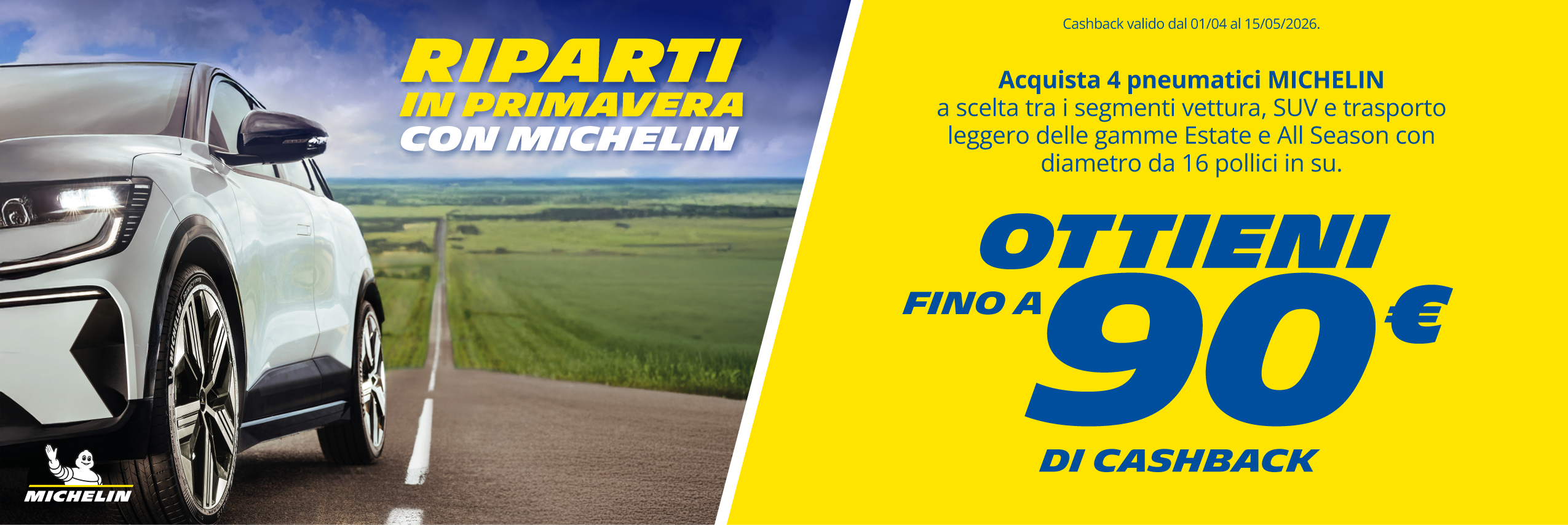 Dal 01 Aprile 2026 al 15 Maggio 2026, recati in un rivenditore aderente ed acquista almeno un set di 4 pneumatici dei segmenti vettura,